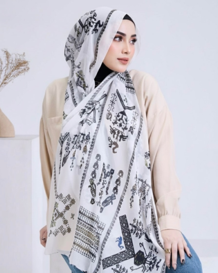 Heritage Script Printed Voile Hijab – Ivory Blend